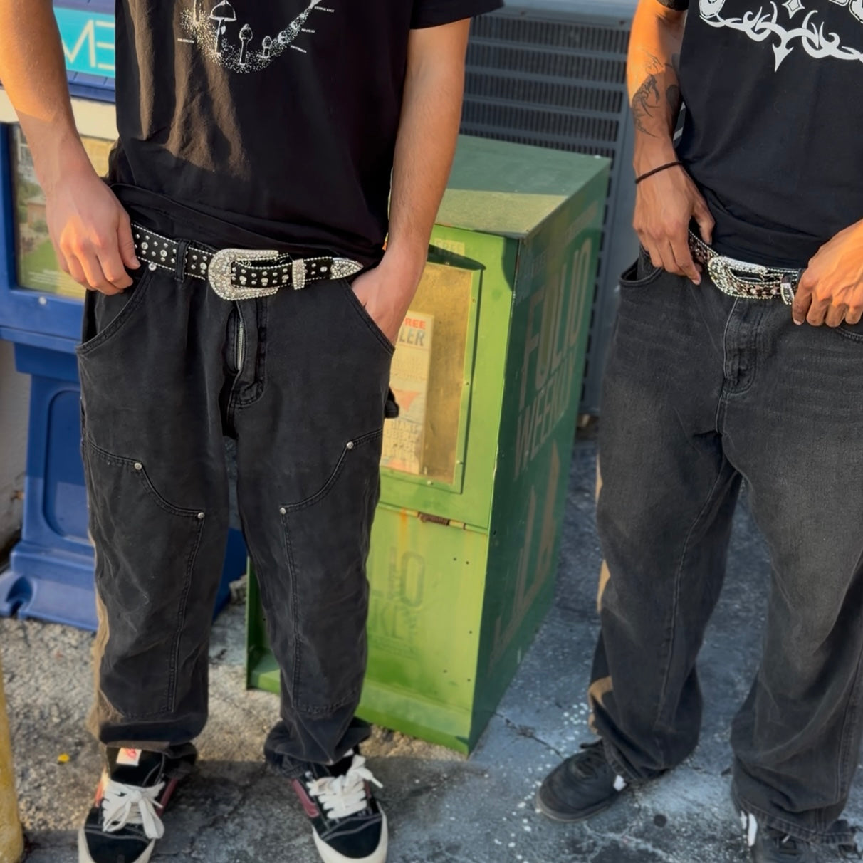 - SPLIT LEATHER + RHINESTONE BELT